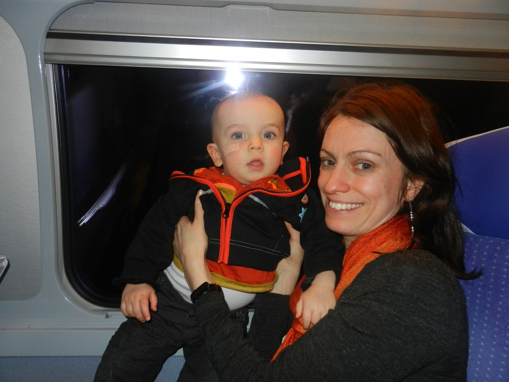 En principe le petit devait voyager sur les genoux des parents, pas nécessaire de prendre une place pour lui à cet âge. Si certains enfants trouvent le train soporifique, tel ne fut pas le cas de notre petit aventurier qui en un peu plus de deux heures de temps à fait connaissance avec tout le wagon. Certains passagers n’ont pas hésité à jouer avec lui ou à le laisser taper sur leur clavier d’ordinateur… et oui si jeune et déjà geek.