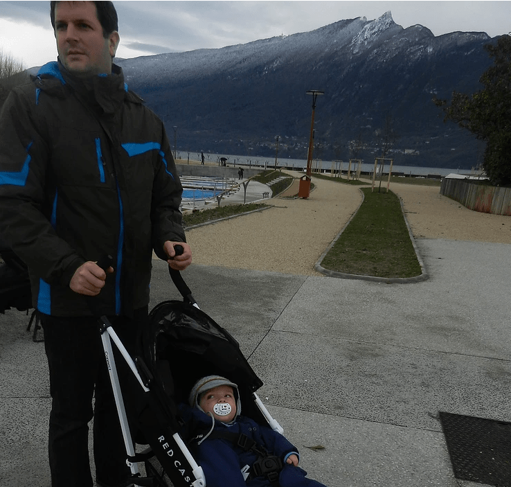 – une au bord du lac du Bourget, il faisait un peu frisquet mais le petit aventurier est bien équipé et les parents assurent ;