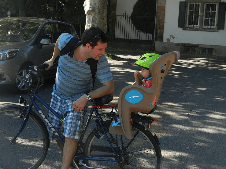 On prend place dans le joli siège made in Décathlon « A fond la forme » (c’est clair qu’il vaut mieux être en forme pour pédaler avec entrain avec un surpoids de dix kilos à l’arrière) et on s’élance direction le canal de la Bruche.