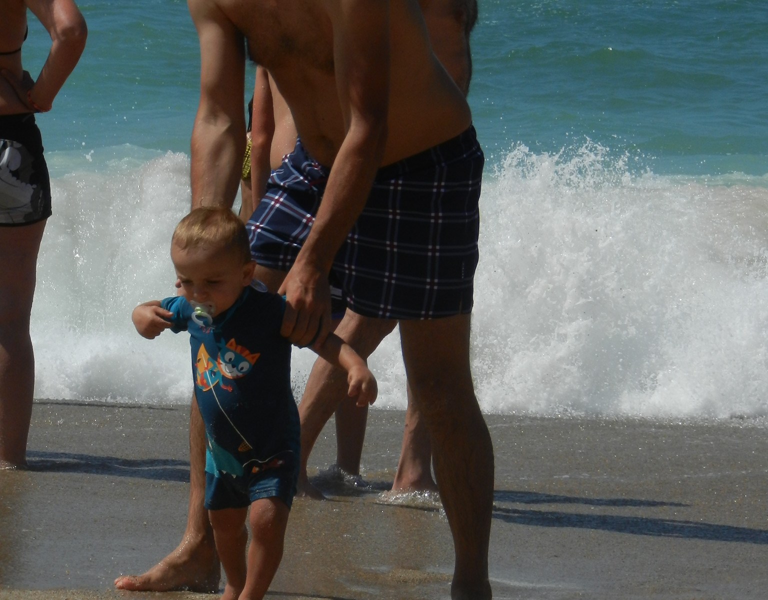 Une de nos escapades à Bidart, vagues plus hautes que le petit.