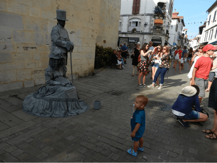 Il y eu aussi quelques épisodes amusants, avec la statue qui bouge dans les rues de Saint Jean de Luz, la mer à San Sebastian pour une première excursion espagnole pour le petit aventurier (mais il reviendra c’est sûr!)