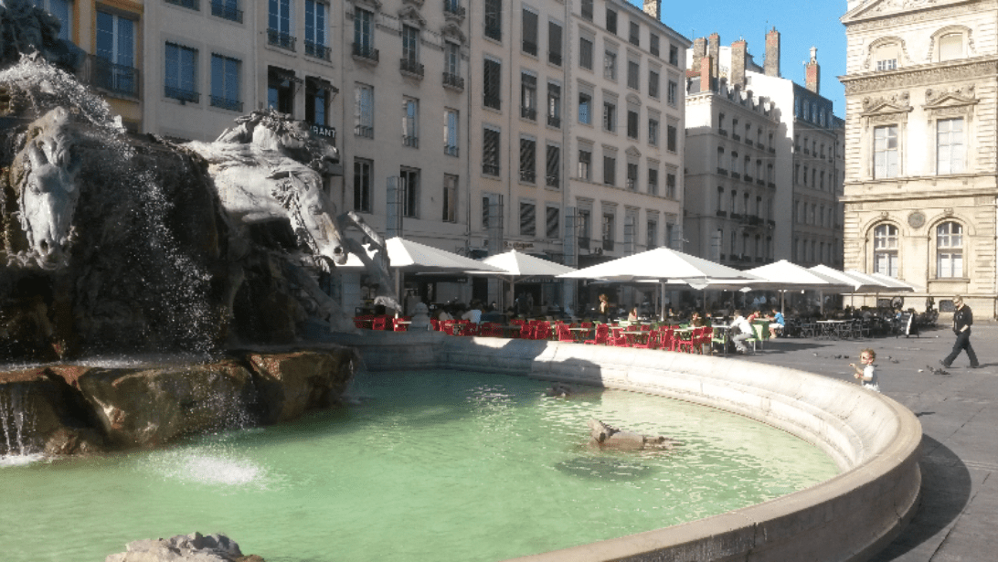 Sur la place des Terreaux, les chevaux fumants, l’on bien impressionné et le mur des Lyonnais nous a donné l’occasion de faire une pause.