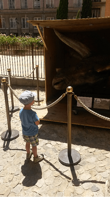 Comme la chaleur nous rattrape, on est passé au musée du cinéma, vraiment chouette en famille, notre Jo est emballé par la tête de dinosaure sortie de Jurassic Park et par tous les masques et accessoires.