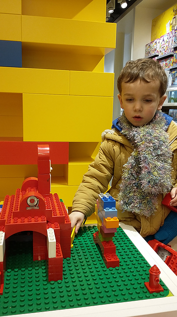 – déambulations dans la ville, on tombe sur un magasin LEGO trop génial : un terrain de jeux immense d’où on ne sort qu’avec la promesse d’offrir une boîte de LEGO au petit aventurier pour ses 3 ans… et le comble c’est qu’il en parle encore, il faut qu’on retourne à Bordeaux lui chercher son cadeau d’anniversaire (on est coincés :)) ;