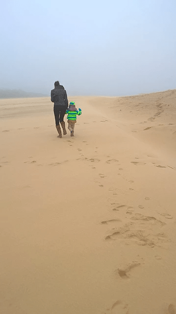 – la dune du Pilat pour une promenade sous une tempête de sable et sous la pluie inoubliable, Jo ne voulait plus s’arrêter même trempé de la tête aux pieds. Expérience unique !