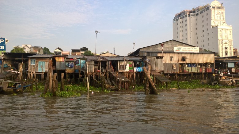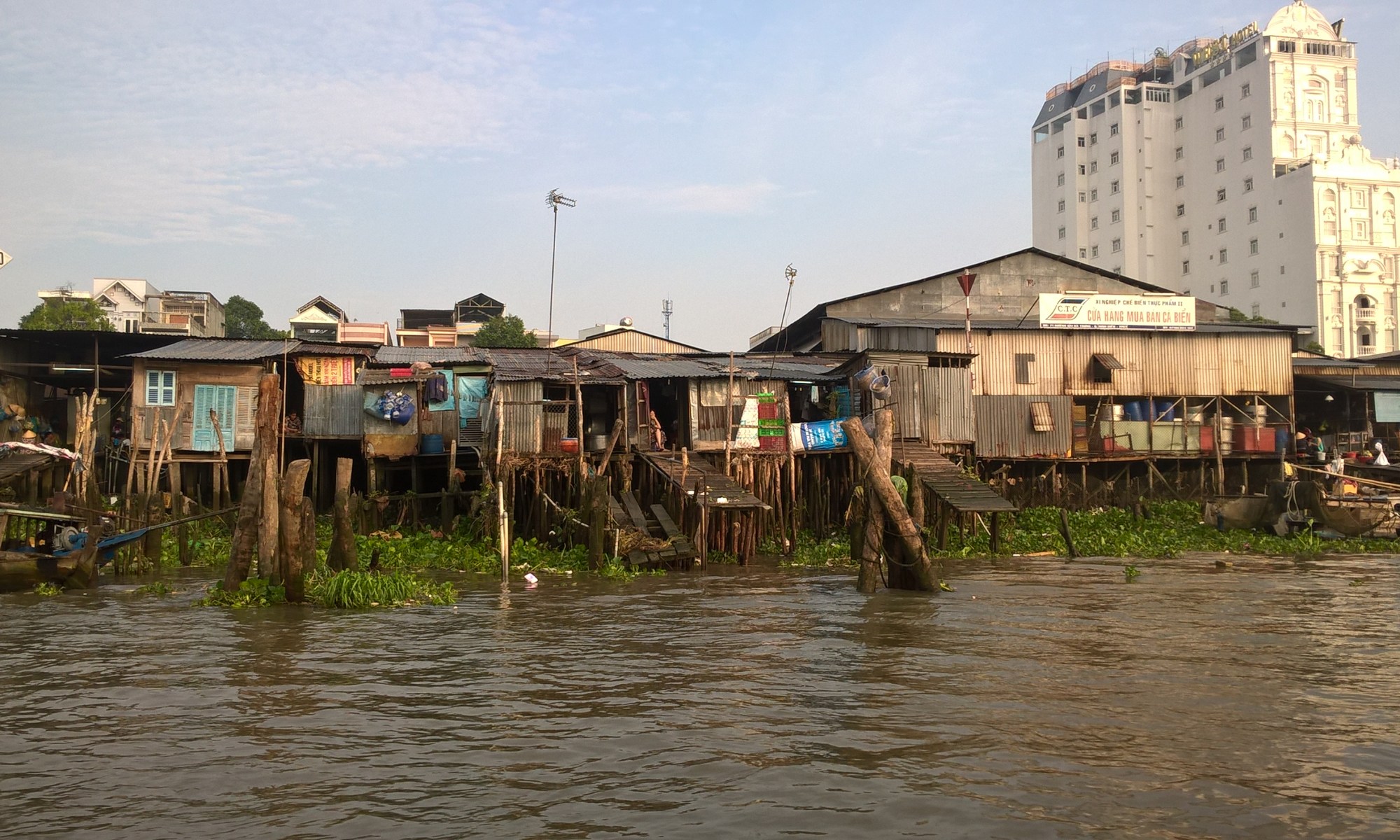La ville n’est pas très belle, mais au coeur du delta et cela permet de voir la vie des gens ici, qui n’a pas l’air simple, le fleuve étant utilisé pour se laver, se baigner, préparer à manger et laver la vaisselle et les vêtements. C’est aussi un moyen de communication permettant de transporter les productions alimentaires des petits paysans du delta jusqu’au marché. Hôtel (même s’il n’a pas de charme particulier, les chambres sont grandes) :Can Tho West