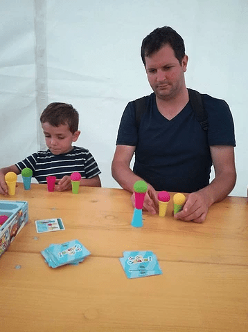 4/Des bretzels et des jeux : quand les éditeurs de jeux de sociétés les mettent à disposition pour le plus grand plaisir des petits et des grands. Pendant que Jo criait » Go Go Gelato », Minicette faisait les yeux doux à l’animatrice et on a pu enchainer les parties. Très bonne initiative, on espère qu’il y aura bientôt une nouvelle édition et Jo sera pas le dernier a en profiter.