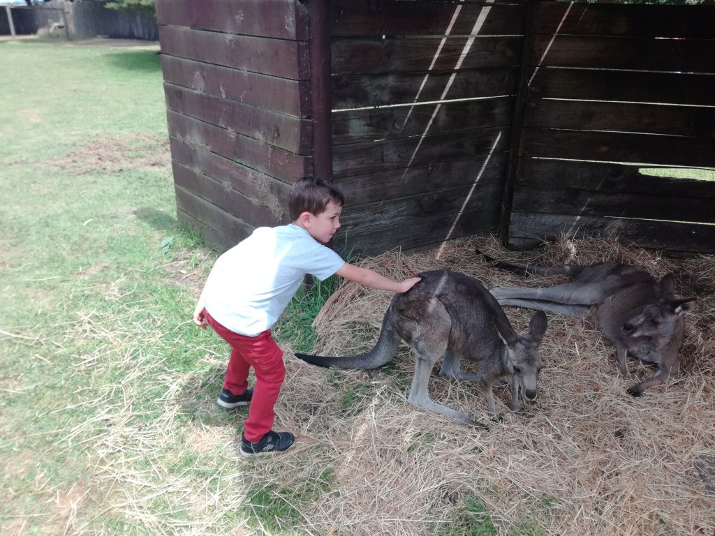 - Un parc animalier, pour une première découverte des kangourous, on peut même les caresser, Jo a expérimenté, pas du tout timide. Moi qui pensais qu’on verrait des kangourous partout, finalement ce sont les seuls qu’on a vus de tout le voyage, ça vaut vraiment le coup, le parc est bien fait.