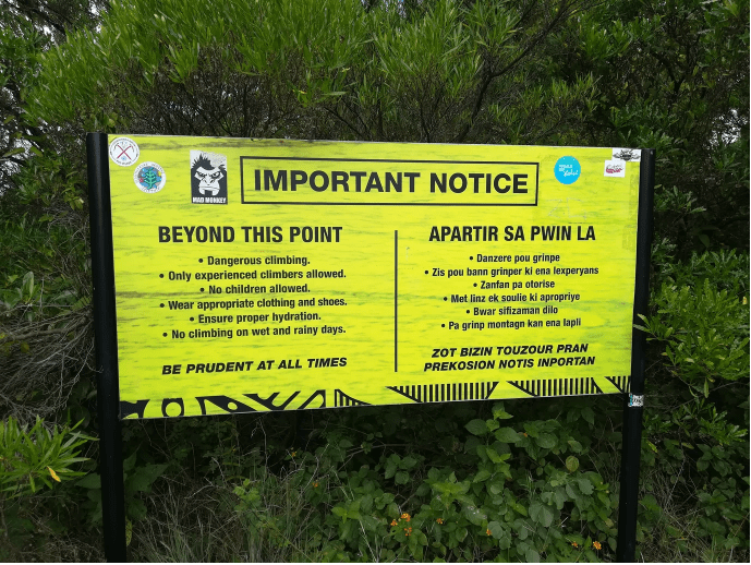 Le Morne : site classé au patrimoine mondial de l’Unesco, ça ne saute pas au yeux quand on arrive, mais c’est une jolie montagne entourée d’un lagon. La classement est lié aux esclaves marrons qui venaient s’y réfugier quelques siècles plus tôt. Sans trop se concerter avec Jo, qui n’est pas le plus motivé des marcheurs nous partons pour l’ascension du Morne sur un chemin très bien indiqué au bout d’une route un peu cahoteuse et pleine de pierres. La montée est raide, il fait chaud, c’est pas le plus facile et nos oreilles s’en souviennent encore, car un petit aventurier de 6 ans qui ne veut pas marcher sait se faire entendre. Au bout d’une heure et demie, nous atteignons la fin de la partie accessible avec des enfants, plus haut ça devient un peu de l’escalade et on ne tente pas. Evidemment la vue est époustouflante et ça vaut vraiment le coup. On a fait la visite seuls, et on a eu aucun mal à trouver notre chemin. Au retour, petite pause sur la plage magnifique au pied de la montagne, le décor est idyllique…