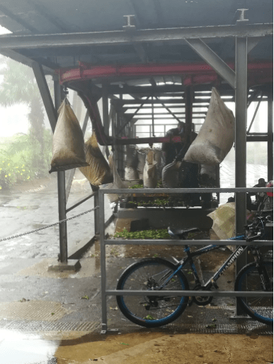 Le thé à Bois Chéri et la biscuiterie Rault : malheureusement même au paradis il peut arriver qu’il pleuve et notre avant dernier jour fut copieusement arrosé. Il faut bien se dire que quand il pleut là-bas ce n’est pas une douce bruine mais des seaux d’eau qui tombent du ciel et ça limite passablement les activités. On a donc décidé de partir à la découverte de la fabrication du thé et de celle des gâteaux au manioc. A chaque fois, il y a eu visite guidée et dégustation de thés la première fois et de plein de sortes de biscuits la seconde fois. On a beaucoup dégusté et on s’est bien amusés malgré le temps.
