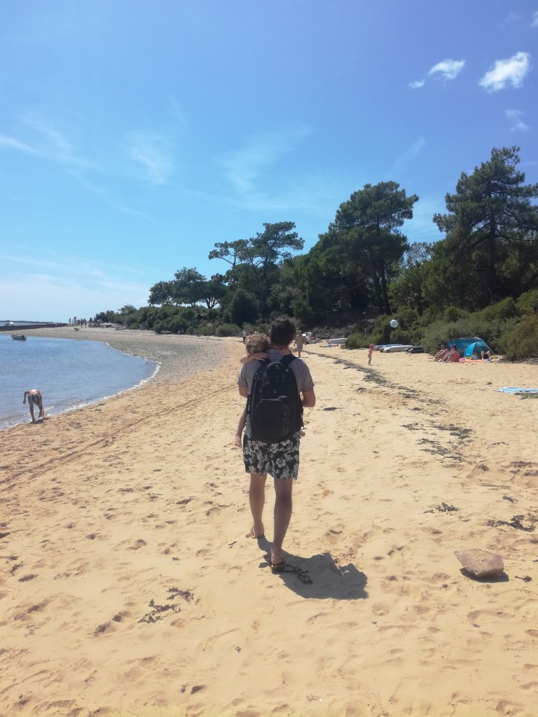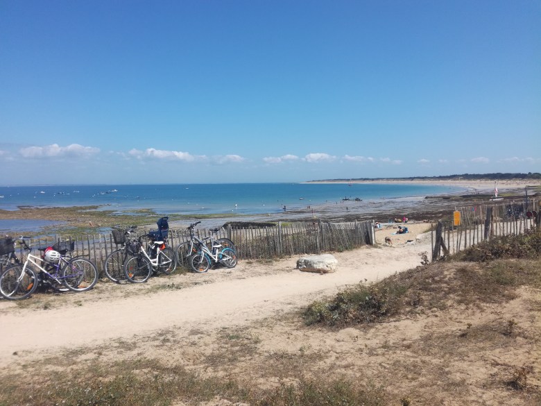 Pour profiter encore des joies du vélos, nous décidons de prendre une petite navette qui nous avance d’une dizaine de kilomètres, pas fous les petits cyclistes mois ils pédalent et mieux ils se portent, pour poursuivre ensuite notre chemin dans la réserve naturelle du Fier, qui est sauvage est préservée. La route se termine à la petite bourgade des Portes-en-ré et surtout à sa très belle plage de l’autre côté de la pinède à Trousse-Chemise. Les aventuriers fatigués se reposent sur le sable.