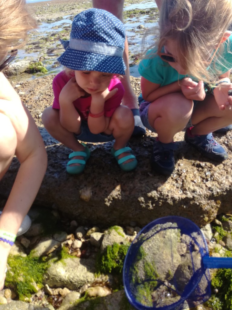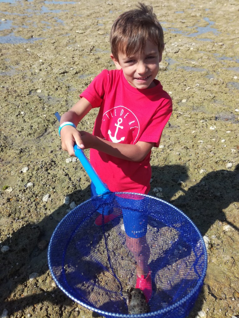 Comme la nature est belle, nous décidons d’en apprendre un peu plus avec Hervé qui nous conduit autour du Phare des Baleines pour en en apprendre plus sur les petits mollusques et le reste de la faune locale. Il est passionné et réussi à captiver même les enfants qui sont pourtant plutôt portés sur la pêche aux crabes, Jo nous en pêche tout un tas avec son épuisette. On a trouvé des étoiles de mer, des huîtres, des bernards l’hermite et plusieurs sortes de crabes. Comme on est là, on fait une jolie halte pique-nique et baignade à la Conche des baleines, qui est une superbe plage.