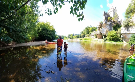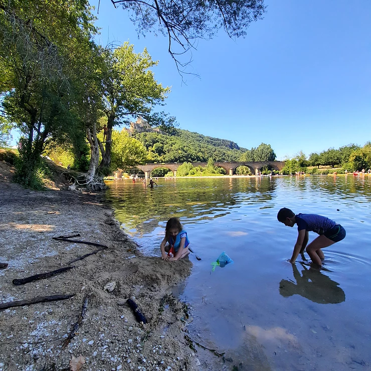 1 – Canoë sur la Vézère : activité phare des vacances en Dordogne. Il y a deux rivières : la Dordogne ou la Vézère. Comme le premier loueur trouvé était sur la Vézère c’est de là que nous sommes partis et ce fut un très belle découverte. Loin de la foule de la Dordogne nous avons profité d’une jolie descente avec des vues sur des châteaux au bord de la rivière. Les loulous se sont posés au fond du canoë et ont profité du paysage…Gros coup de coeur pour tout le monde.