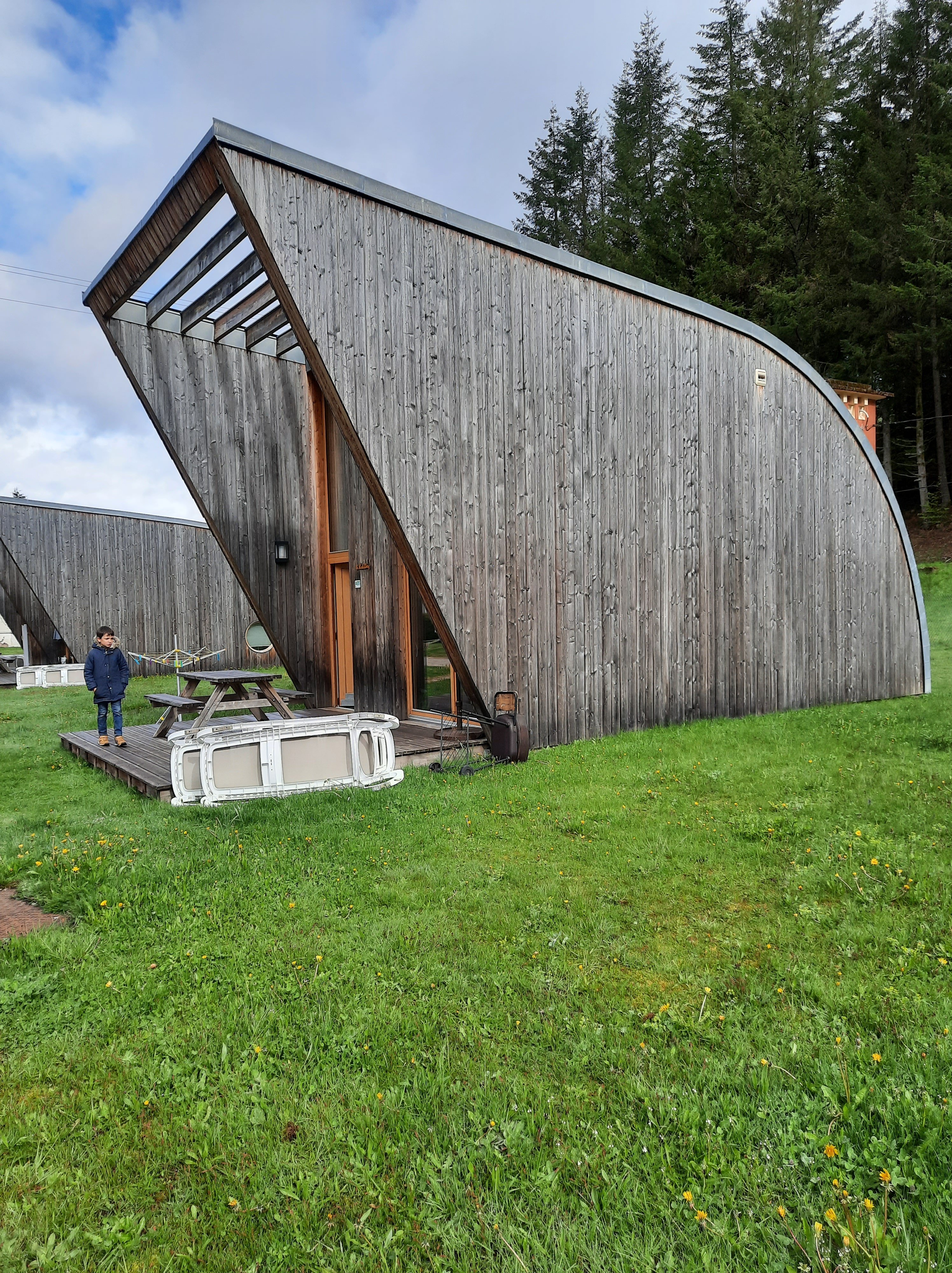 Nous posons nos valises dans un chouette camping La Verte Vallée dans un sympathique Ecolodge en bois, avec deux chambres, un petit salon et surtout …. du chauffage. Il y a aussi une piscine, mais elle est fermée pour raisons sanitaires et un dépôt de pain pour le matin.