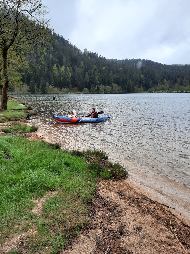 Autour de nous pour trois jours : le lac, la montagne et la forêt. C’est sauvage, calme et magnifique. Le petit bémol sera le temps plus que mitigé et les fermetures administratives des restaurants et des pédalos (on a pas bien compris pour les pédalos, mais bon le loueur proposait aussi des gaufres alors on en a profité) et puis on avait notre canoe qui lui peut sortir par tous les temps et malgré les restrictions sanitaires