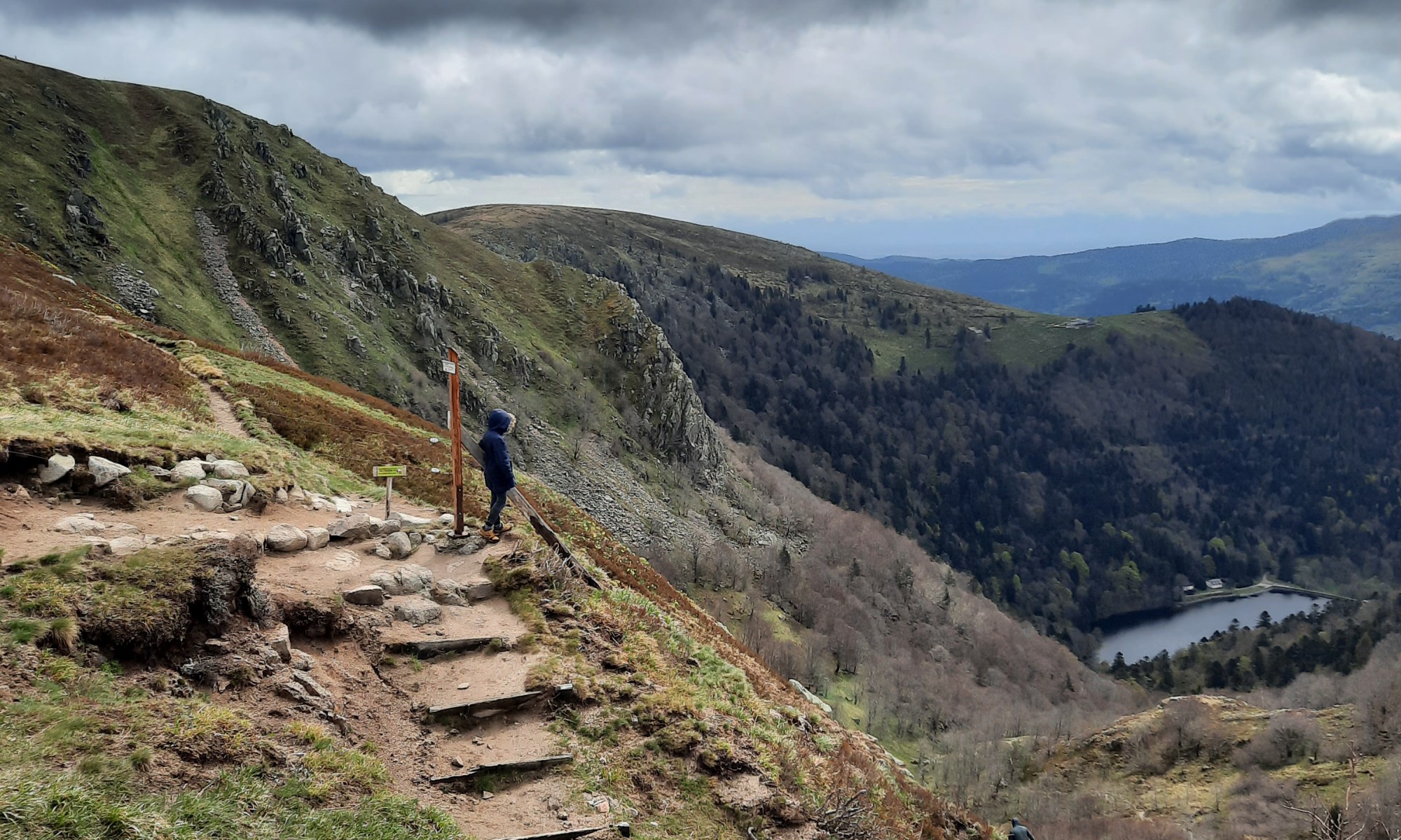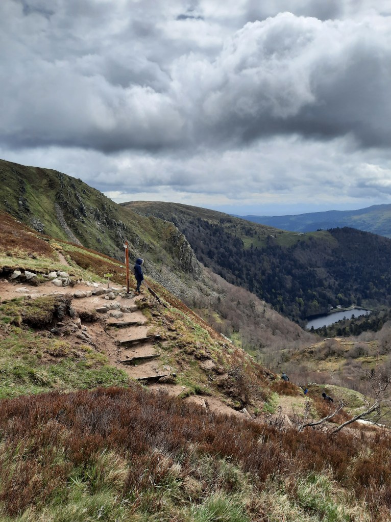 - Le Hohneck : avant le retour au bercail, le dernier arrêt est pour le plus haut sommet du coin. Il fait plutôt frais, il reste même de la neige mais la vue vaut le coup. On se gare juste au bas et on finit par une vingtaine de minutes de montée. Et récompense au sommet, le vendeur de frites et de tartes aux myrtilles est ouvert !!