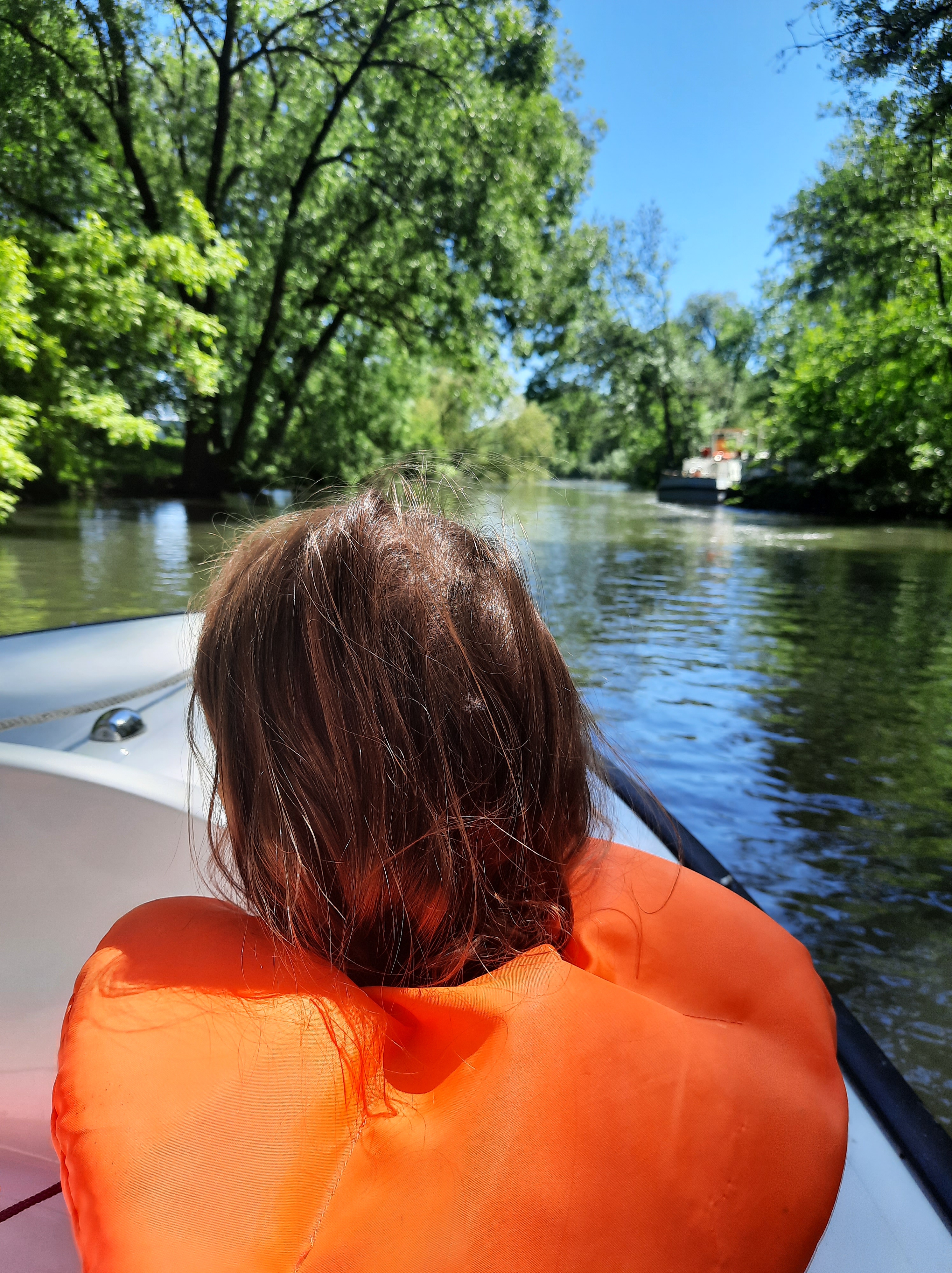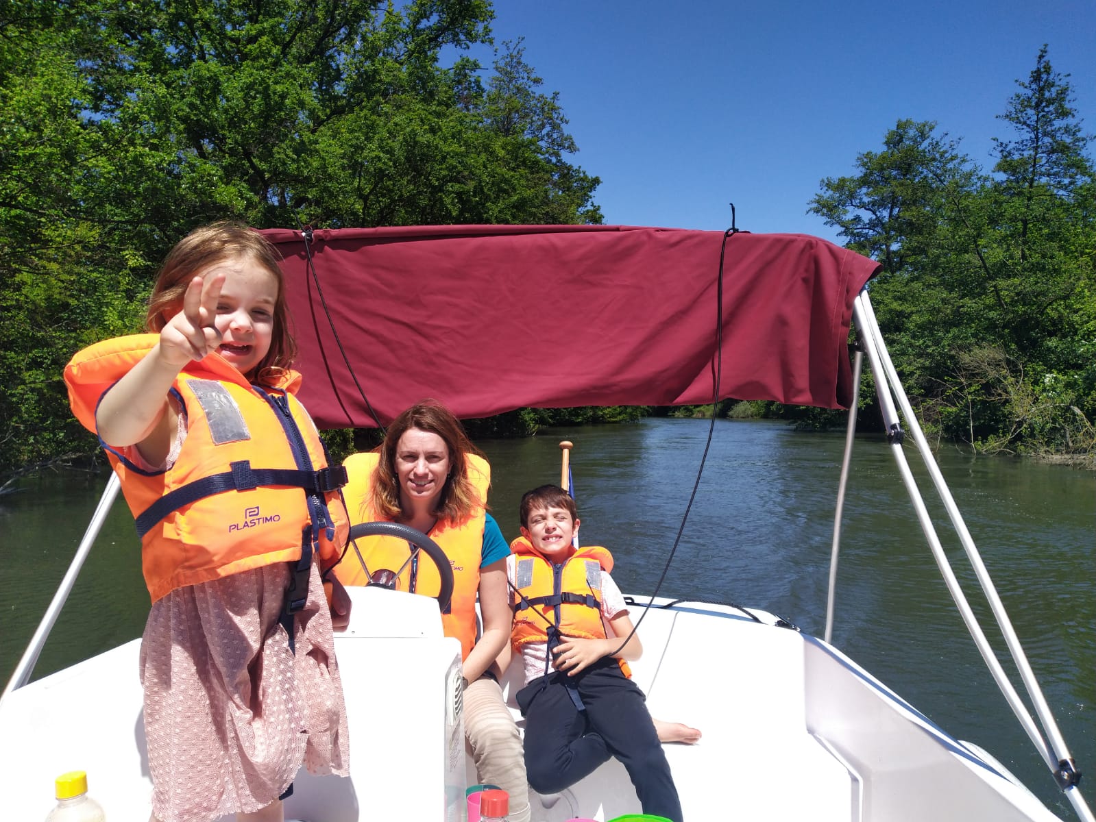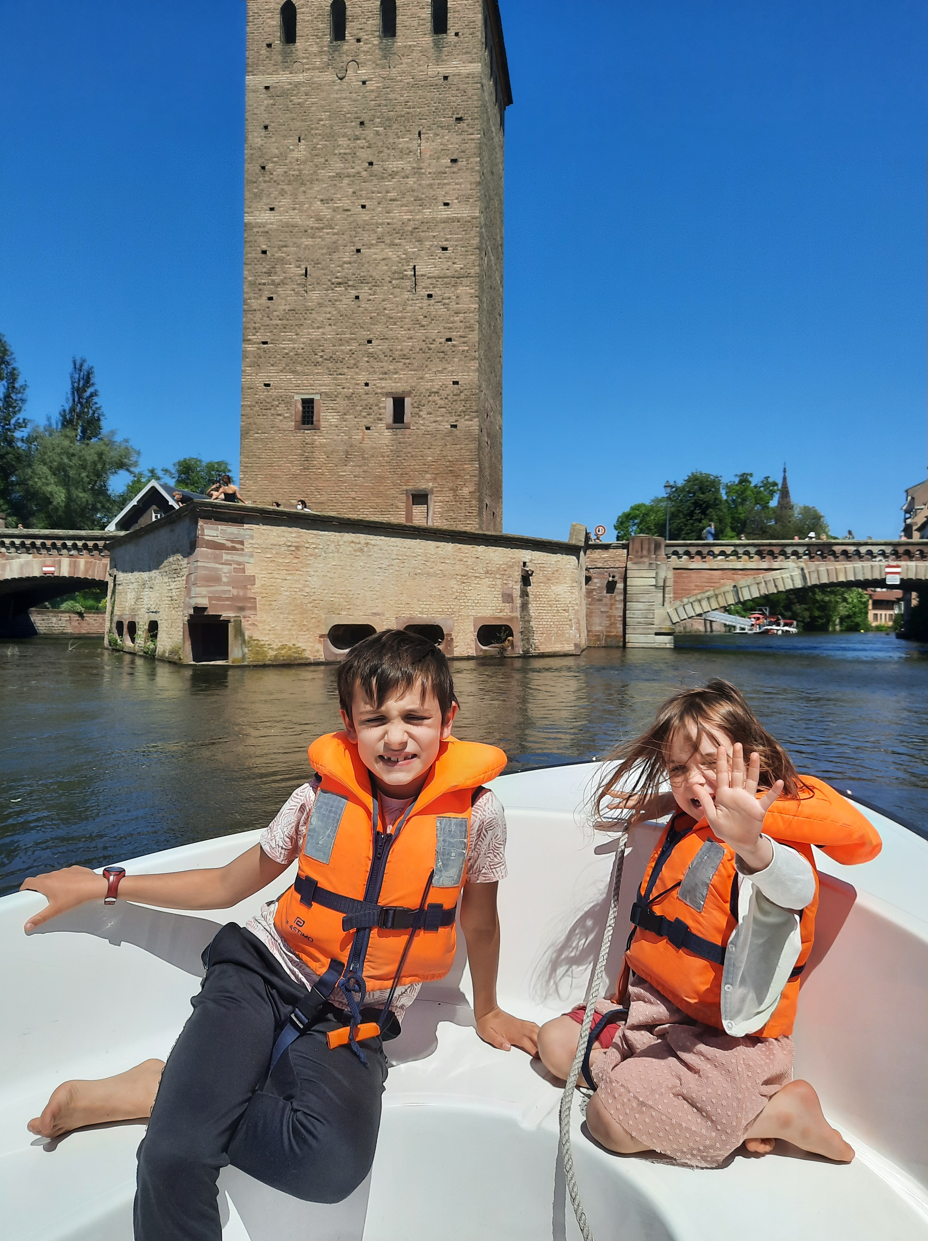 Questions instructions, on arrive à l’heure réservée et nous sommes dotés de gilets de sauvetage qu’il ne faudra pas retirer tout au long de la promenade. Ensuite de brèves explications sont données et on embarque sur un bateau nommé d’après une injure du Capitaine Haddock. C’est très facile à manœuvrer et plutôt confortable. Aller 2 heures à contre courant pour finir devant le restaurant du Château de l’Ill et retour en une petite heure. Pour une fête des mères c’était réussi !