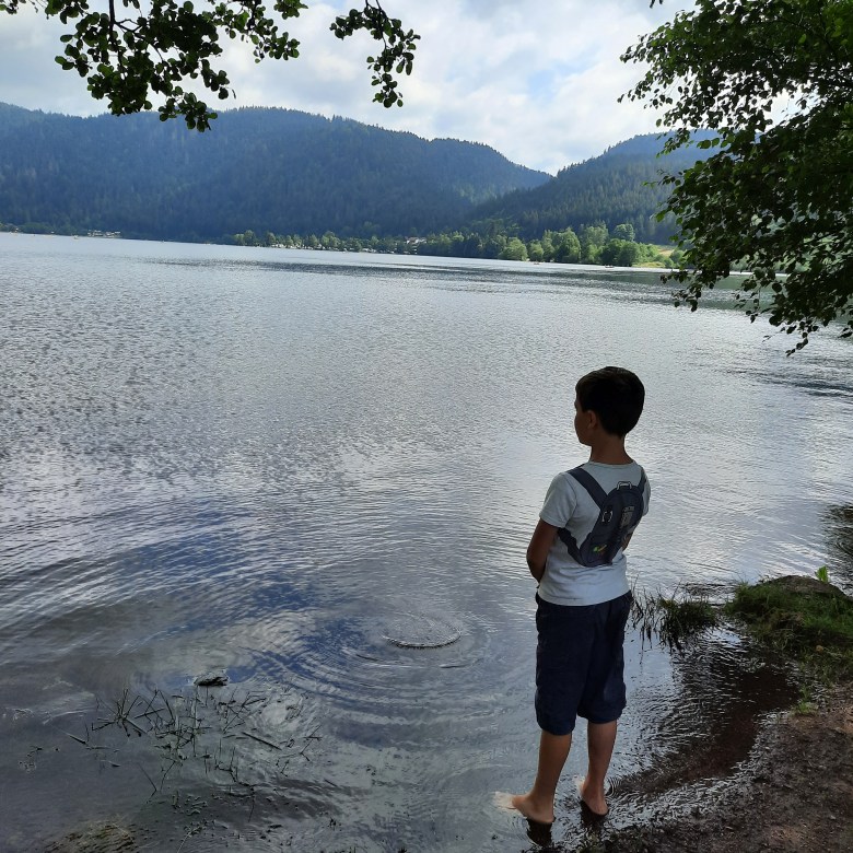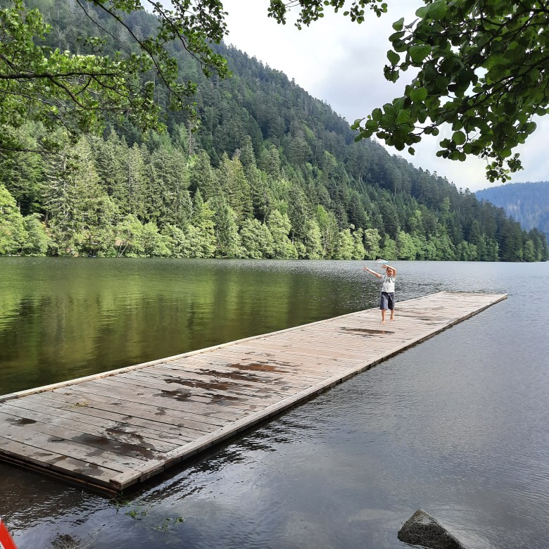 - Les lacs : les Hautes-Vosges c’est aussi le pays des lacs, celui plus urbanisé de Gérardmer et celui plus sauvage de Longemer pour les plus étendus. Il y en a aussi plein de plus petits, mais nous n’avons pas tout essayé. A Gérardmer ce fut l’occasion de faire du pédalo, apparemment là où cet engin a été inventé, à Longemer ce fut plus dégustation de glaces, la météo ne permettant pas les activités aquatiques. Mais ces deux lacs sont très sympas et c’est agréable de marcher tout autour. Il avait légèrement plu quelques jours avant notre arrivée, d’où le ponton presque submergé.