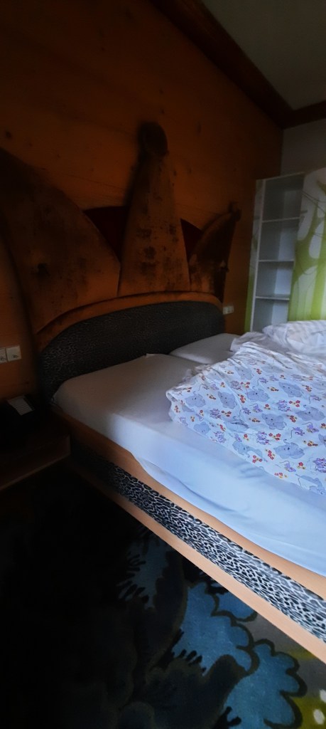 C’est au Feldbergerhof que nous avons posé nos valises dans des conditions optimales pour passer un bon moment, quelques photos de l’hôtel avec une chambre en mode conte de fées avec une couronne au-dessus du lit et une petite chambre séparée toute mignonne.