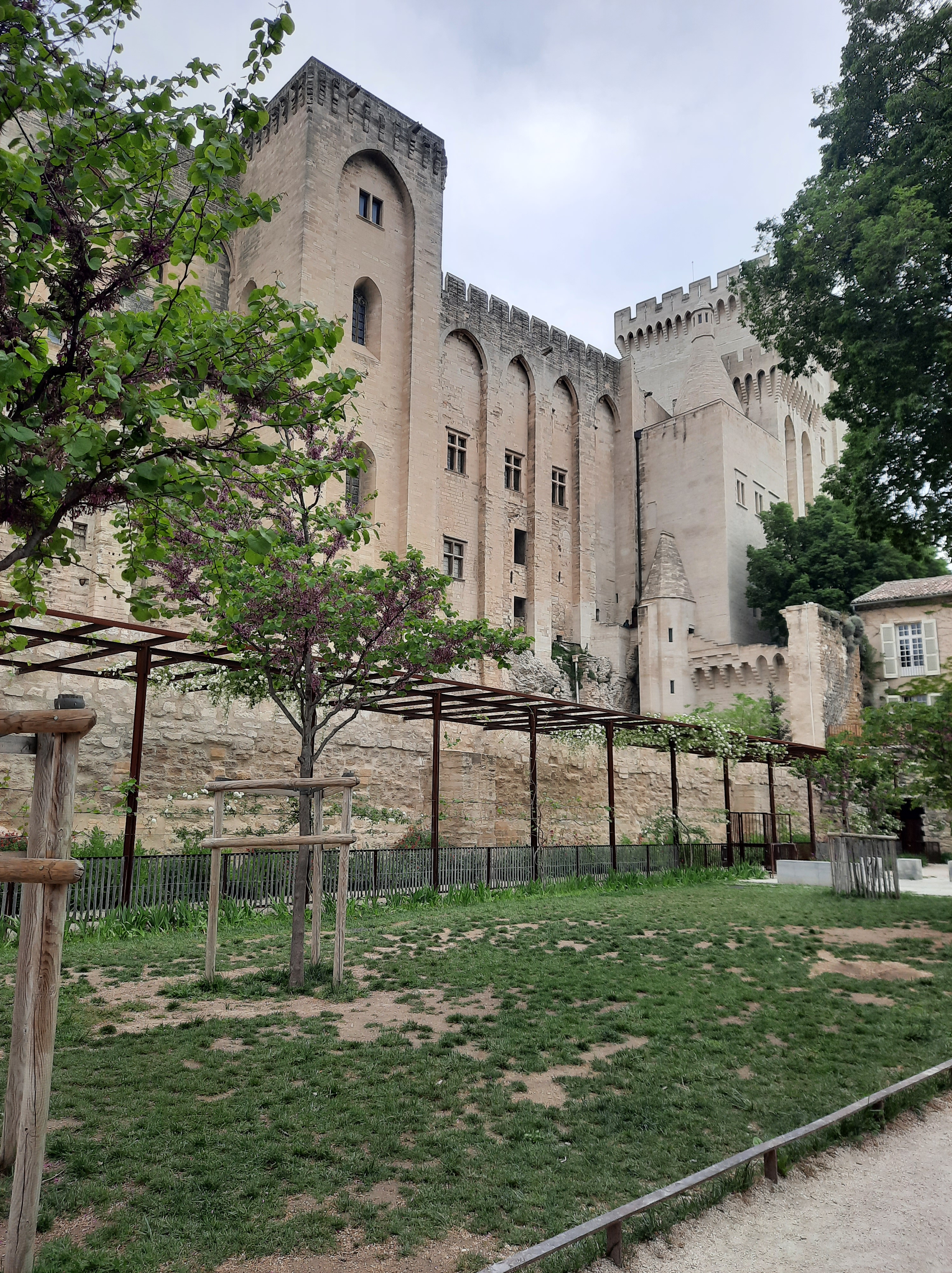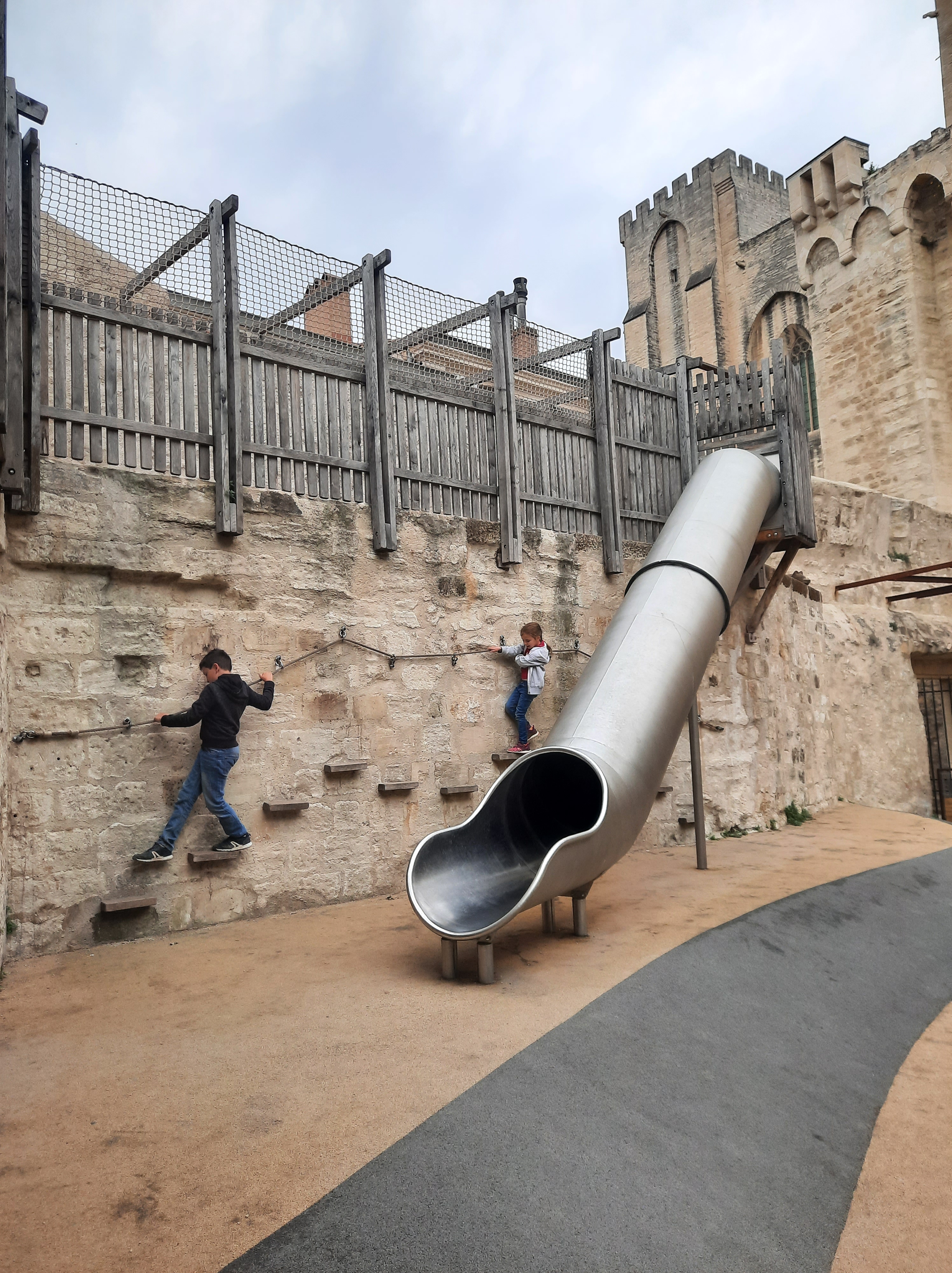 - Avignon : sur le Pont et passage au Palais des Papes par une journée pluvieuse mais culturellement bien remplie. Comme d’autres sites historiques, la visite se fait avec cet outil magique qu’est l’Histopad et c’est bien sympa à utiliser pour visualiser les reconstitutions de l’intérieur du Palais. Pour les enfants c’est magique aussi, puisqu’ils se prennent au jeu et apprécient la visite et on a aussi trouvé une étonnante aire de jeu avec vue sur le Palais des Papes dans un sympathique thème médiéval !