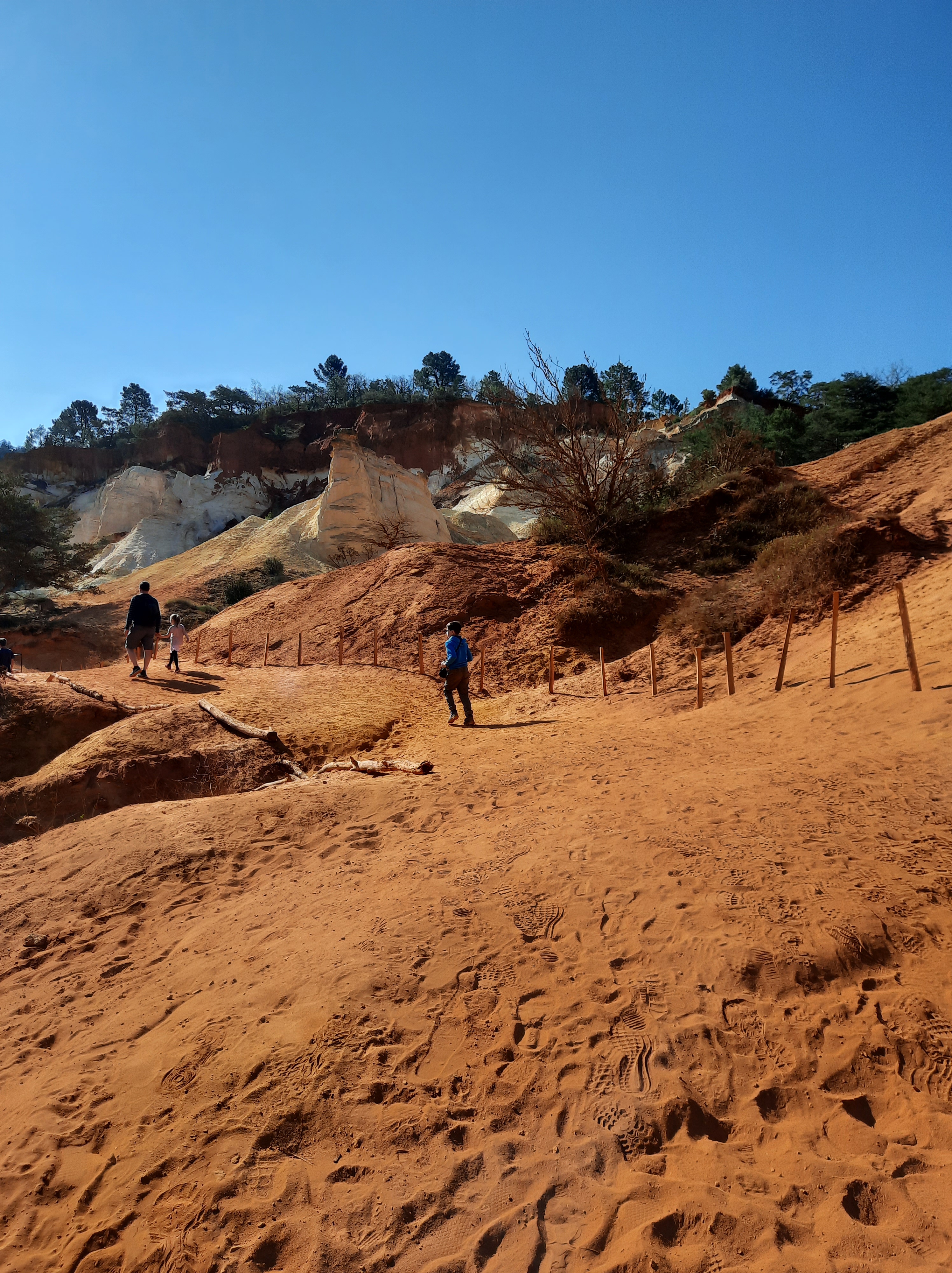 - Colorado provençal : c’est le lieu où il faut aller en cas de séjour dans le coin. Finalement, ça nous a plu mais pas autant que l’espérions. Le circuit reste assez court et les paysages sont certes impressionnants mais on passe vite. Heureusement en ce dimanche de Pâques nous sommes arrivés tôt, car le parking a une jauge et au-delà d’un certain nombre de visiteurs, on ne passe plus.