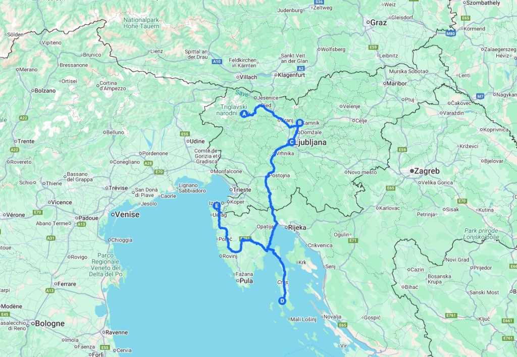 Ci-dessous notre petit itinéraire -avec quelques jours en Croatie aussi 😉