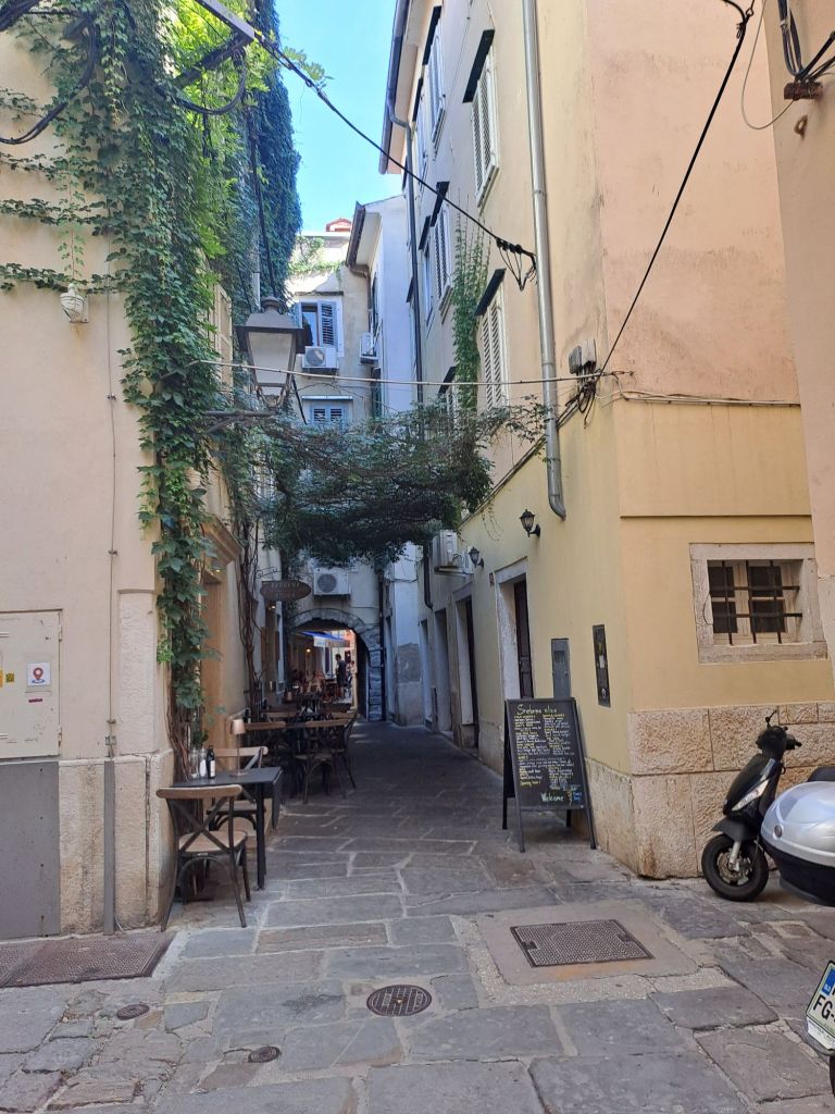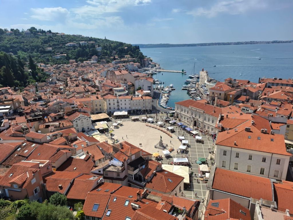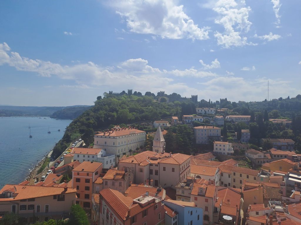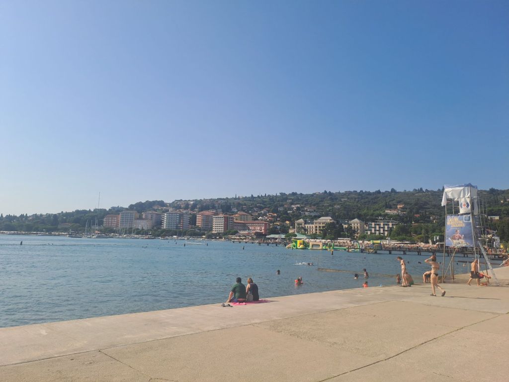 Dernier arrêt : Portoroz, la côte slovène. Je ne pensais pas apprécier cette étape dans une ville balnéaire hyper peuplée et au littoral en béton, puisqu’ici il n’y a pas de plage. Mais finalement, entre le logement très agréable que nous avons trouvé, la chaleur estivale et l’ambiance du bord du mer ce fut une très belle découverte. Et plus particulièrement encore la ville de Piran avec son ambiance italienne qui est vraiment magnifique.